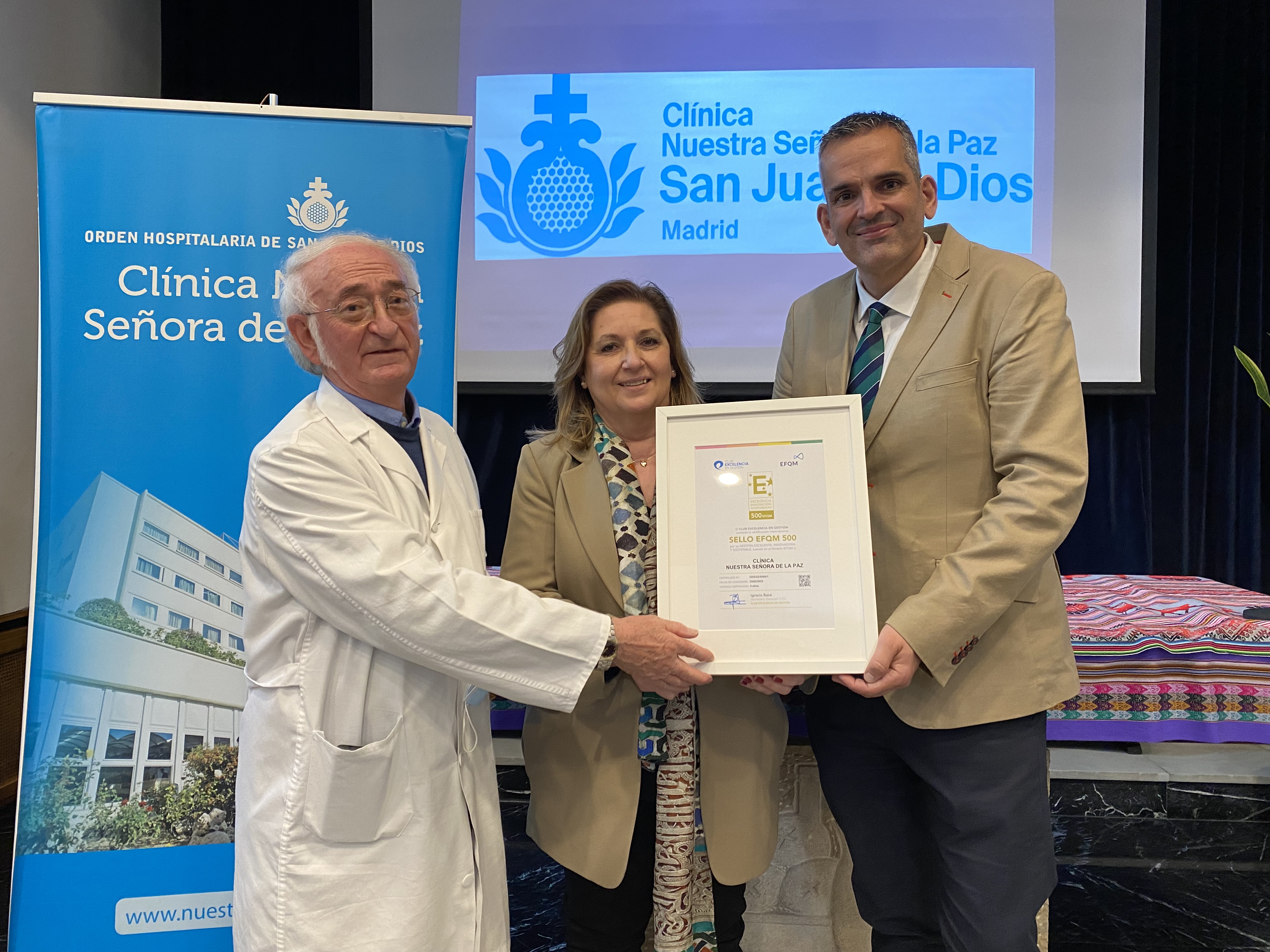 El Club Excelencia en Gestión ha entregado el Sello EFQM 500 a la Clínica Nuestra Señora de la Paz, dependiente de la Orden Hospitalaria Hermanos de San Juan de Dios, localizada en Madrid y dedicada a la salud mental y psiquiátrica. Se trata de su sexto reconocimiento EFQM y el primero en el que supera la barrera de los 500 puntos.
