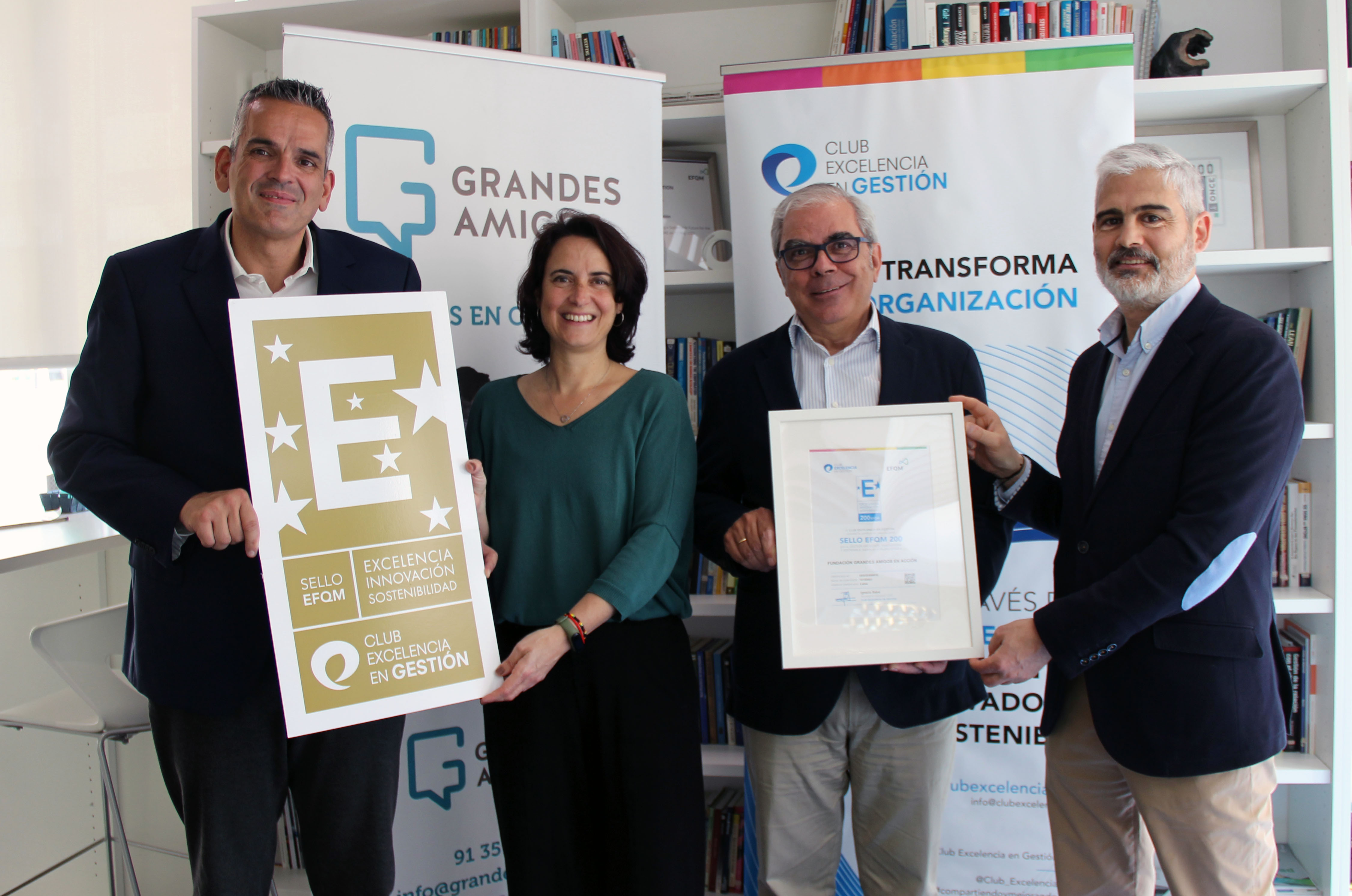 La Fundación Grandes Amigos, que se dedica desde hace 20 años a acompañar a las personas de edad, ha recibido su primer Sello EFQM 200. El encargado de entregarlo ha sido Alfredo Millán, director de Servicios y Excelencia del Club Excelencia en Gestión, que ha destacado la apuesta por la transformación y la mejora continua de la organización, así como su cultura de compromiso.